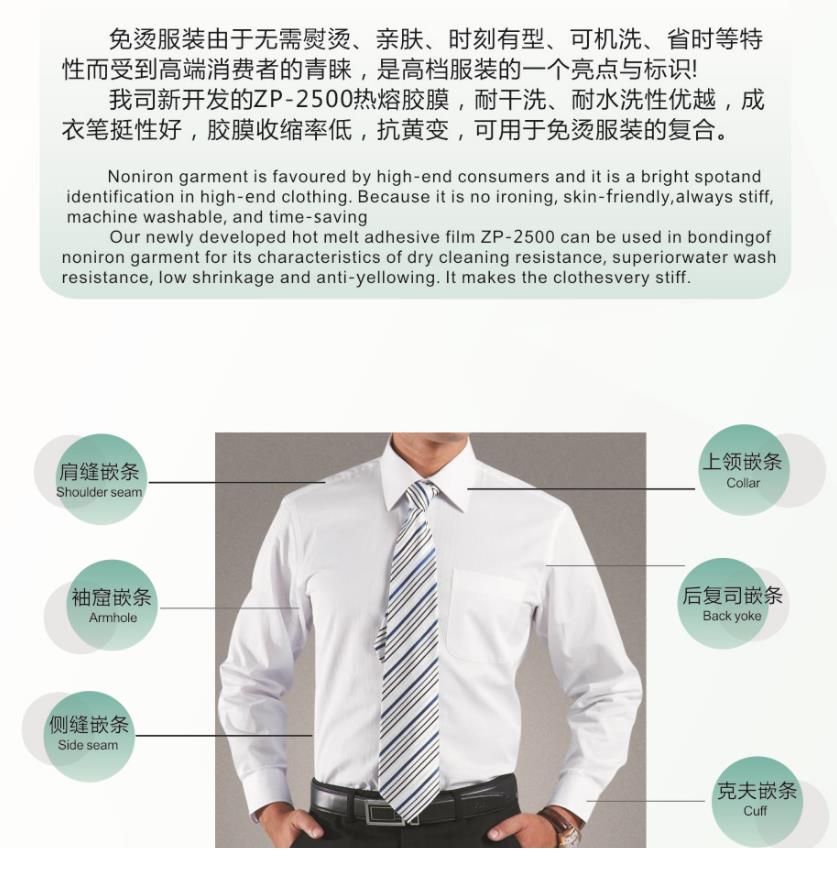استفاده از آسترهای چسباننده چسب داغ بر روی یقه و سرآستین لباس به تدریج به انتخاب بهتری برای پیراهن های بدون آهن گران قیمت تبدیل شده است.